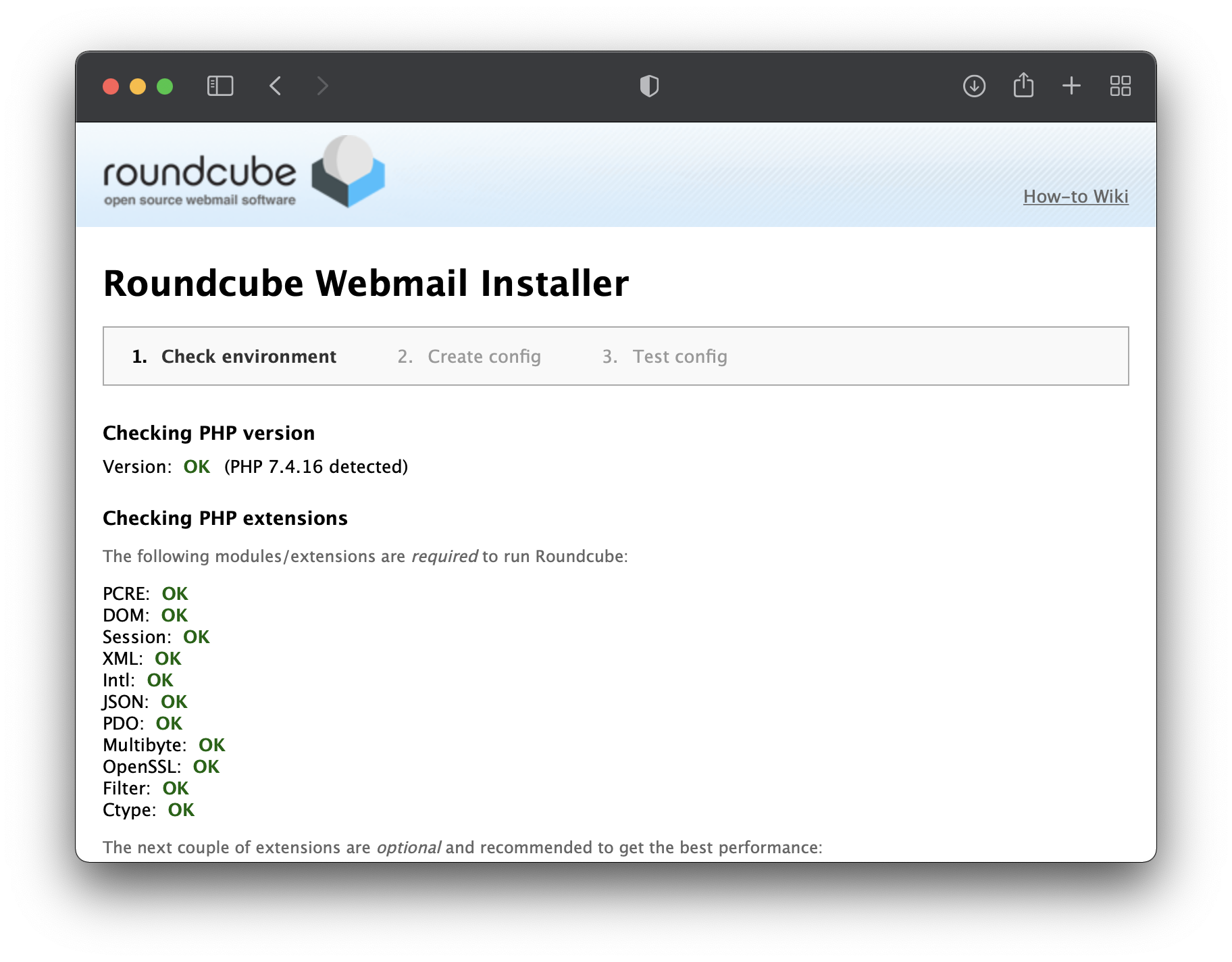 After a successful update, browse to http://localhost/installer/ and set up your Roundcube installation: